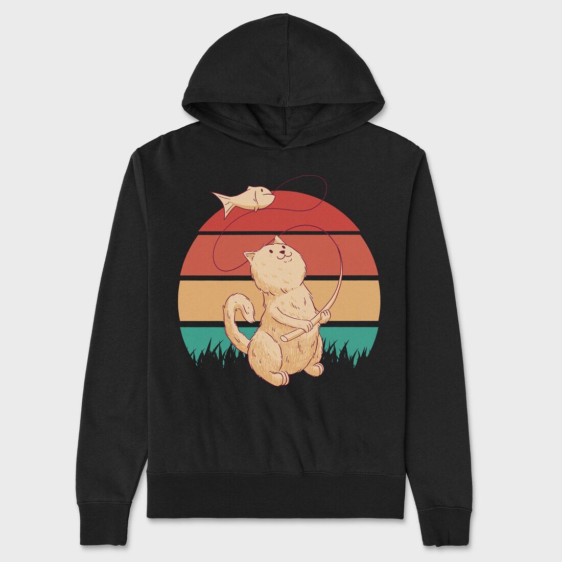 Cat Fishing Retro Sunset, Hanorac Oversize Barbati (Unisex)