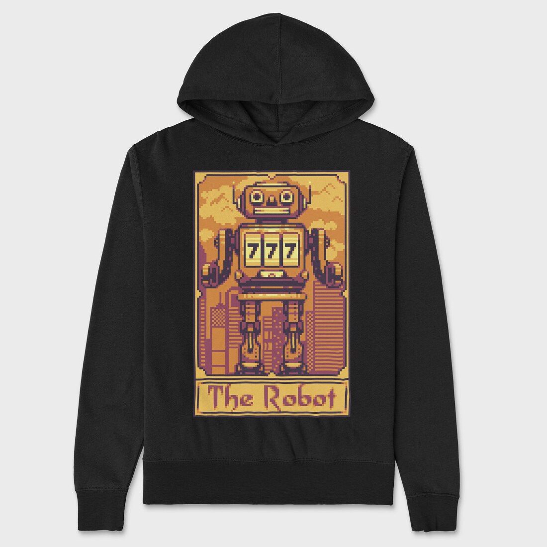 Pixelart Tarot Card the Robot, Hanorac Oversize Barbati (Unisex)