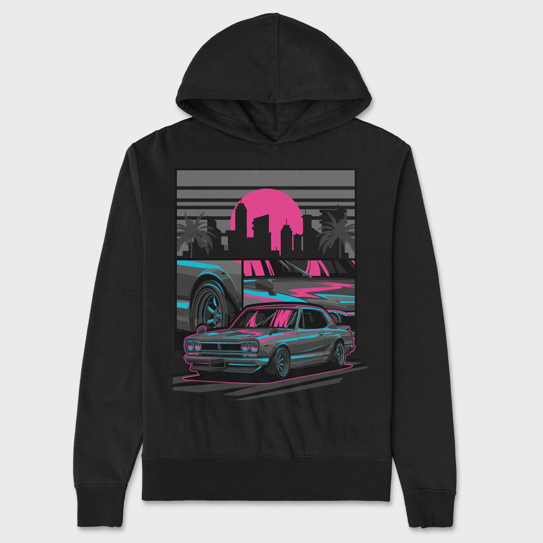 Skyline Retro Night, Hanorac Oversize Barbati (Unisex)
