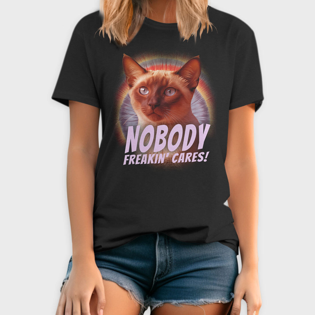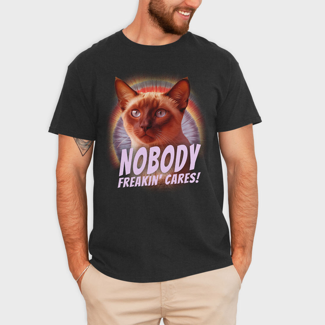 Cat Nobody Freakin Cares, Tricou Barbati (Unisex)