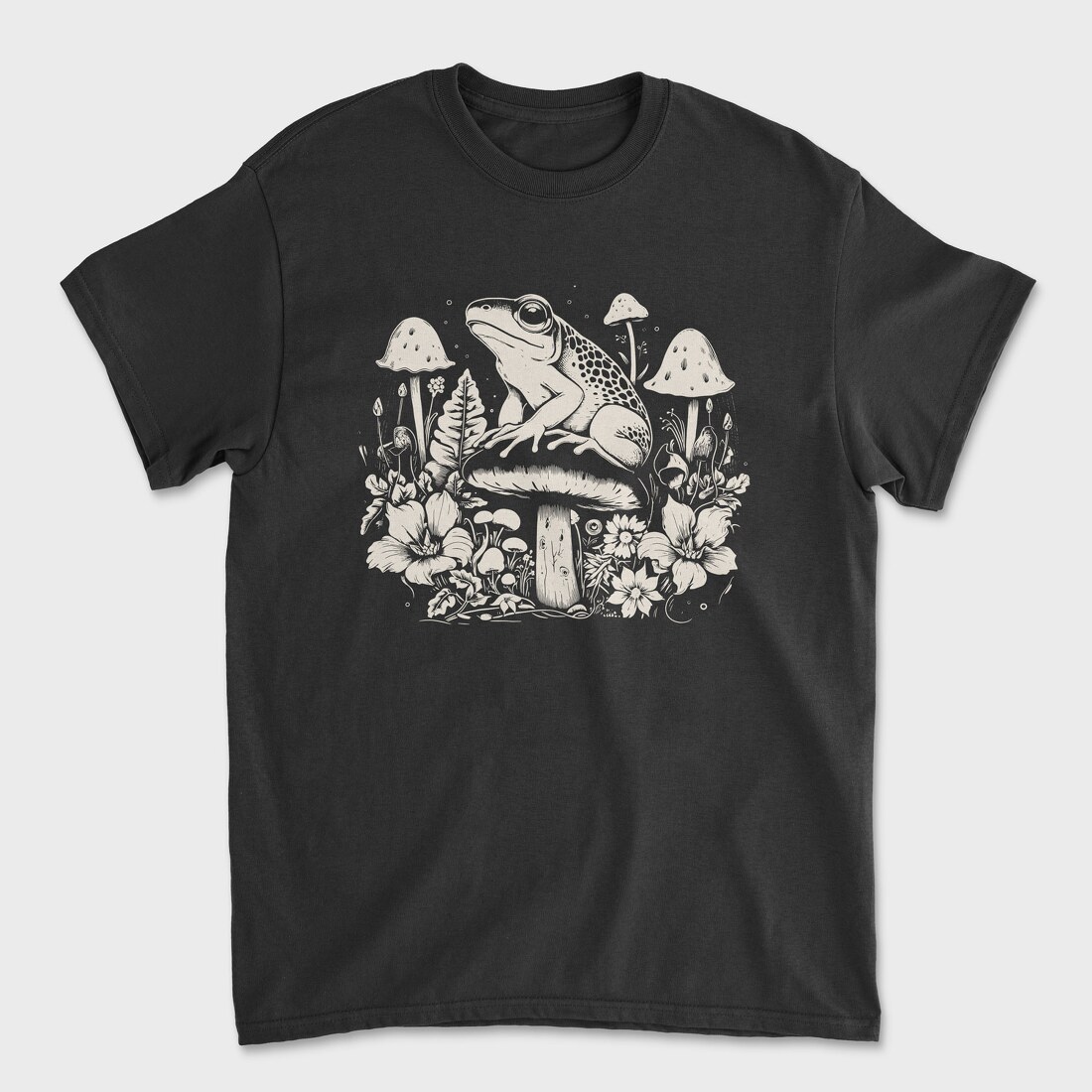 Monochrome Frog on Mushroom, Tricou Barbati (Unisex)