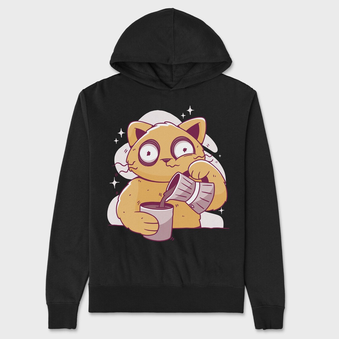 Coffee Cat, Hanorac Oversize Barbati (Unisex)