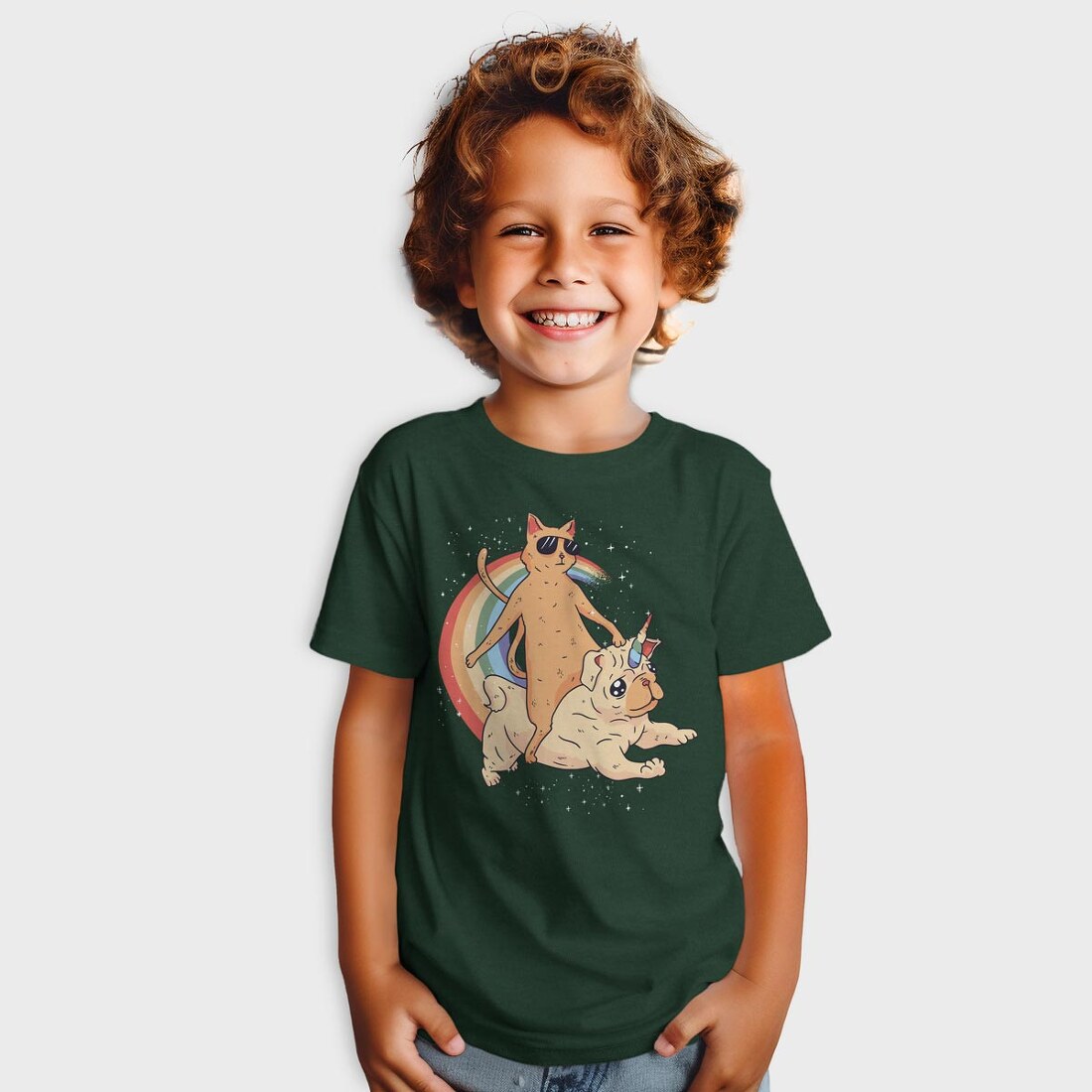Cat Riding Dog Unicorn, Tricou Copii